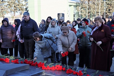 Присутствующие минутой молчания почтили память защитников Родины и возложили цветы к подножию памятника.