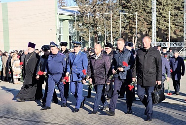 У мемориала в честь воинов, погибших в годы Гражданской и Великой Отечественной войны, собрались представители администрации района и сельских поселений, правоохранительных органов, казачества, духовенства, юнармейцы, учащиеся школ, молодёжь и неравнодушные жители района.