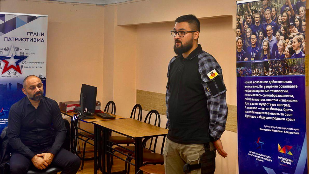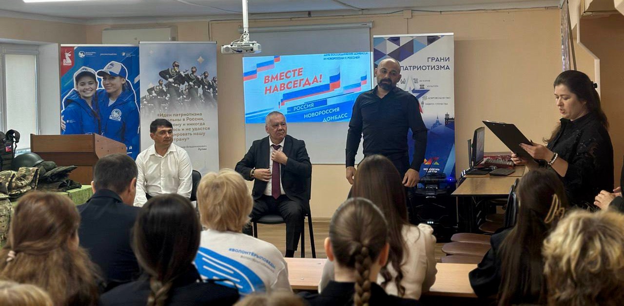 В преддверии исторического события — воссоединения ДНР, ЛНР, Запорожской и Херсонской областей с Россией — в Краснодарском кооперативном институте состоялась встреча студентов с участником Специальной военной операции Анатолием Земляковым.