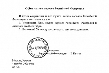 Президент России Владимир Путин подписал указы об установлении двух новых памятных дат: Дня коренных малочисленных народов и Дня языков народов страны. Документы уже опубликованы на официальном портале правовой информации.