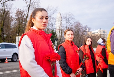 Вместе с руководством края и ветеранским сообществом ребята возложили цветы к зажжённому Вечному Огню и почтили память защитников Родины минутой молчания.