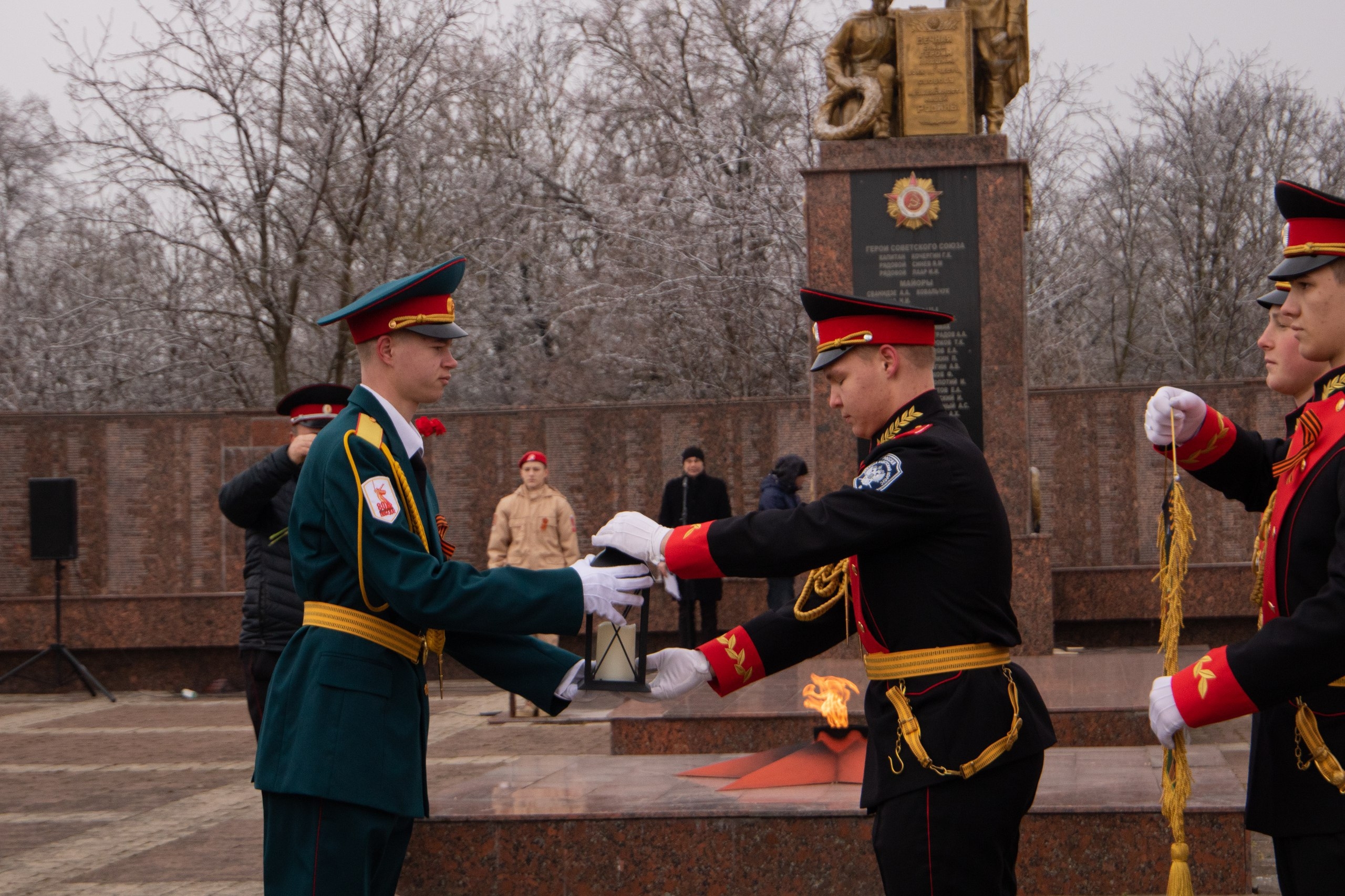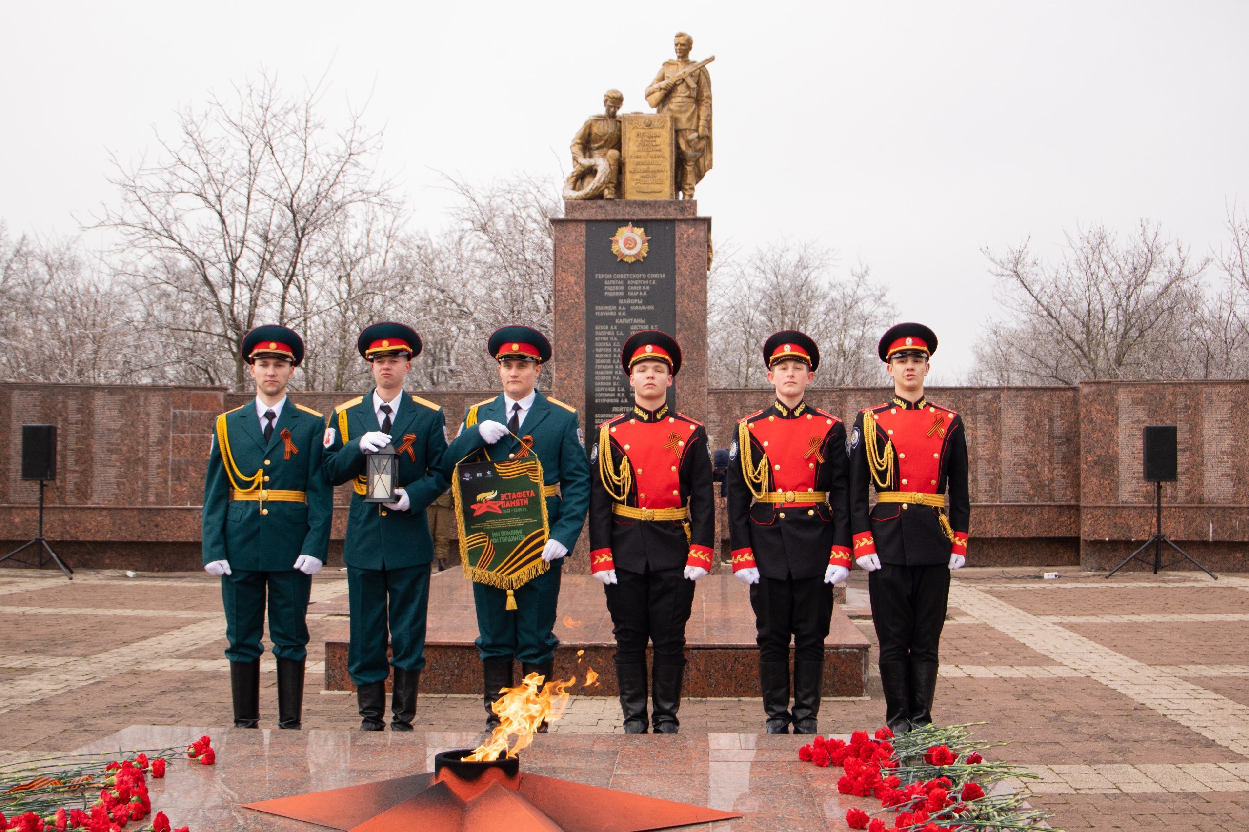 У Вечного Огня города воинской доблести Крымска дан старт главной патриотической акции «Эстафета Памяти». Кадеты Крымского района передали горящую лампаду Посту № 1 Темрюкского района. Теперь Эстафета будет передаваться из рук в руки, обогнув весь край, и завершится в День памяти и скорби, в городе Краснодаре.