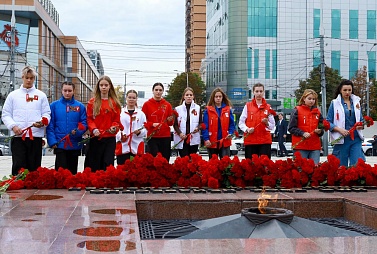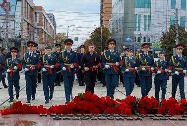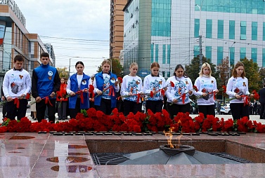 В рамках торжественных мероприятий молодёжь Кубани, вместе с губернатором Вениамином Кондратьевым и руководителем департамента молодежной политики Романом Дмитриевым, приняли участие в церемонии возложения цветов на площади Памяти Героев в Краснодаре.