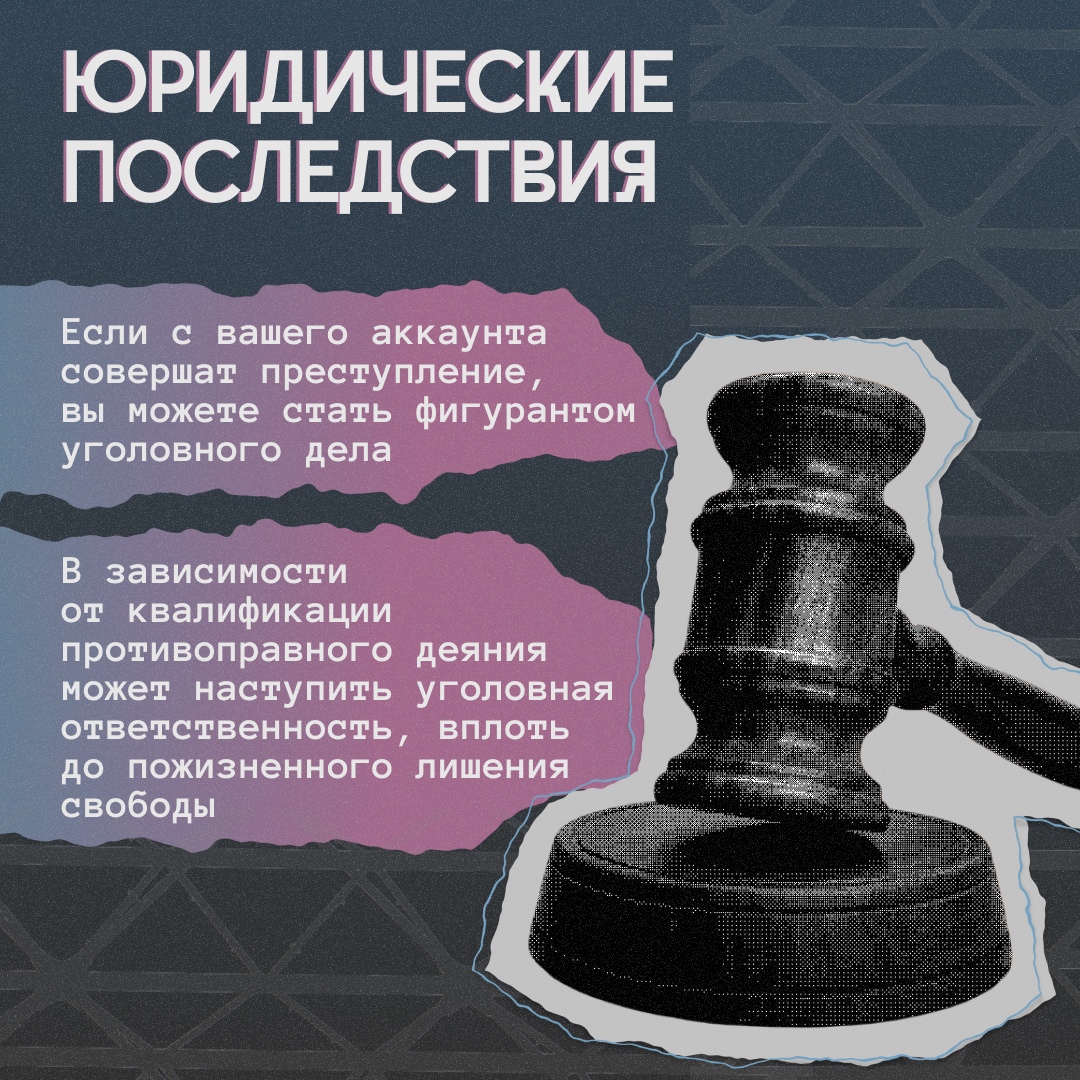 За нарушение этого закона грозит: - административный штраф до 700 тысяч рублей; - лишение свободы до двух лет — если докажут, что переданный аккаунт использовался для мошеннических схем.