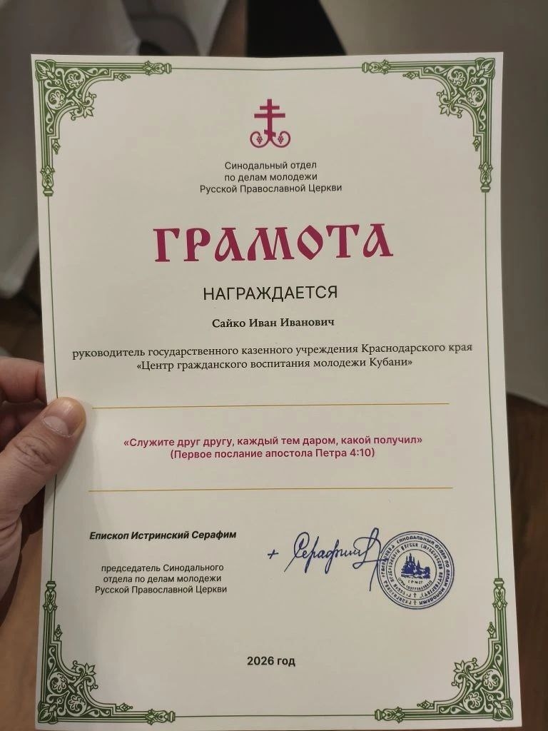 Особым признанием стала грамота от Епископа Истринского Серафима, председателя Синодального отдела по делам молодёжи, которой был отмечен наш руководитель