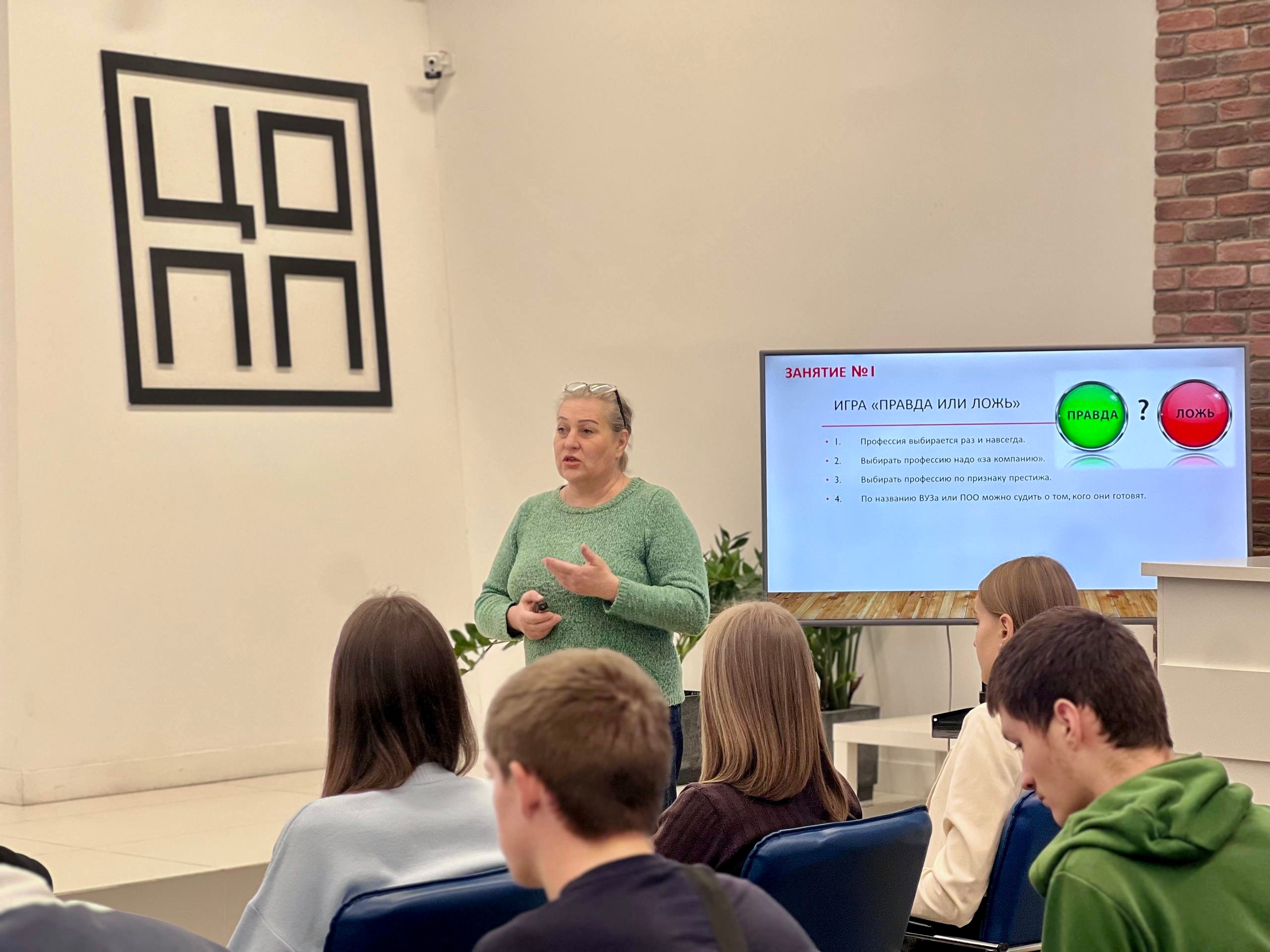 А дальше окунулись в «Лабиринты выбора» с Евгенией Витальевной Старковой. Ребята разбирались, из чего состоит формула идеальной профессии, проходили тесты на профориентацию и смотрели на рынок труда будущего.