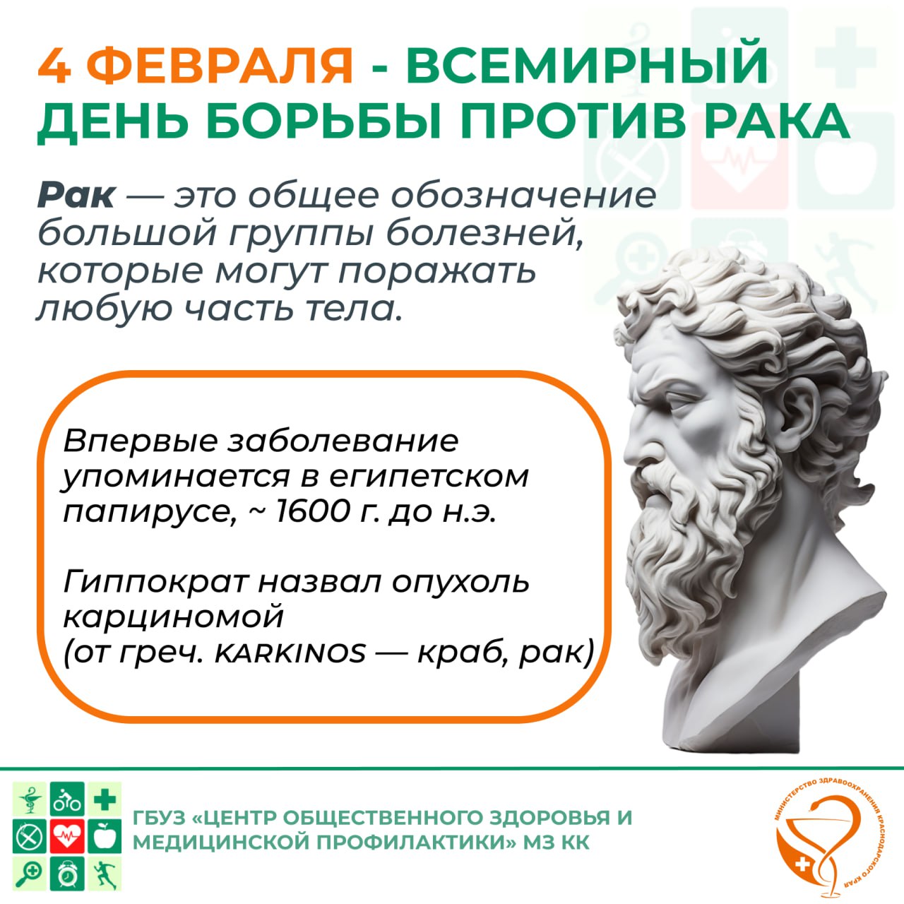 Ежегодно 4 февраля во всём мире отмечается Всемирный день борьбы с раком — важная дата, призванная привлечь внимание общественности к глобальной проблеме онкологических заболеваний, напомнить о серьёзности их распространения и мобилизовать усилия для снижения смертности от рака.