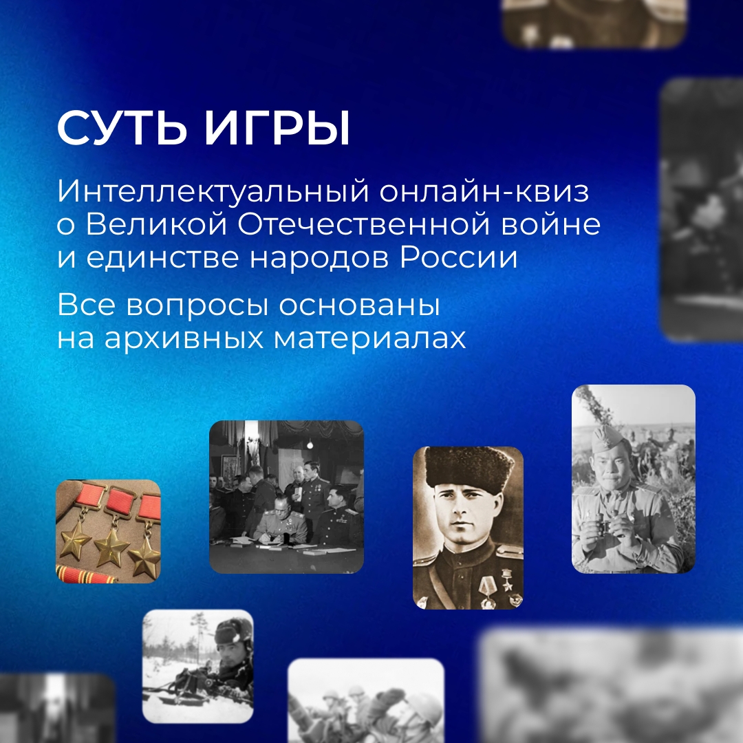 2026-й объявлен Президентом России Годом единства народов России. Именно этой теме посвящена игра. Мы вспоминаем непреложный факт: Великую Победу одержал единый многонациональный советский народ. Герои Советского Союза – независимо от национальности и рода войск –внесли неоценимый вклад в защиту Родины.