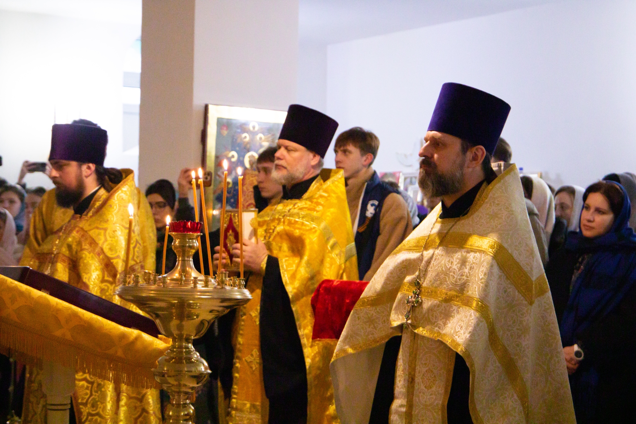 Молебен возглавил протоиерей Дмитрий Руднев. А после, объединившись в вере, участники отправились на торжественное заседание, на котором перед ребятами выступили представители органов власти, духовенства, науки и образования.