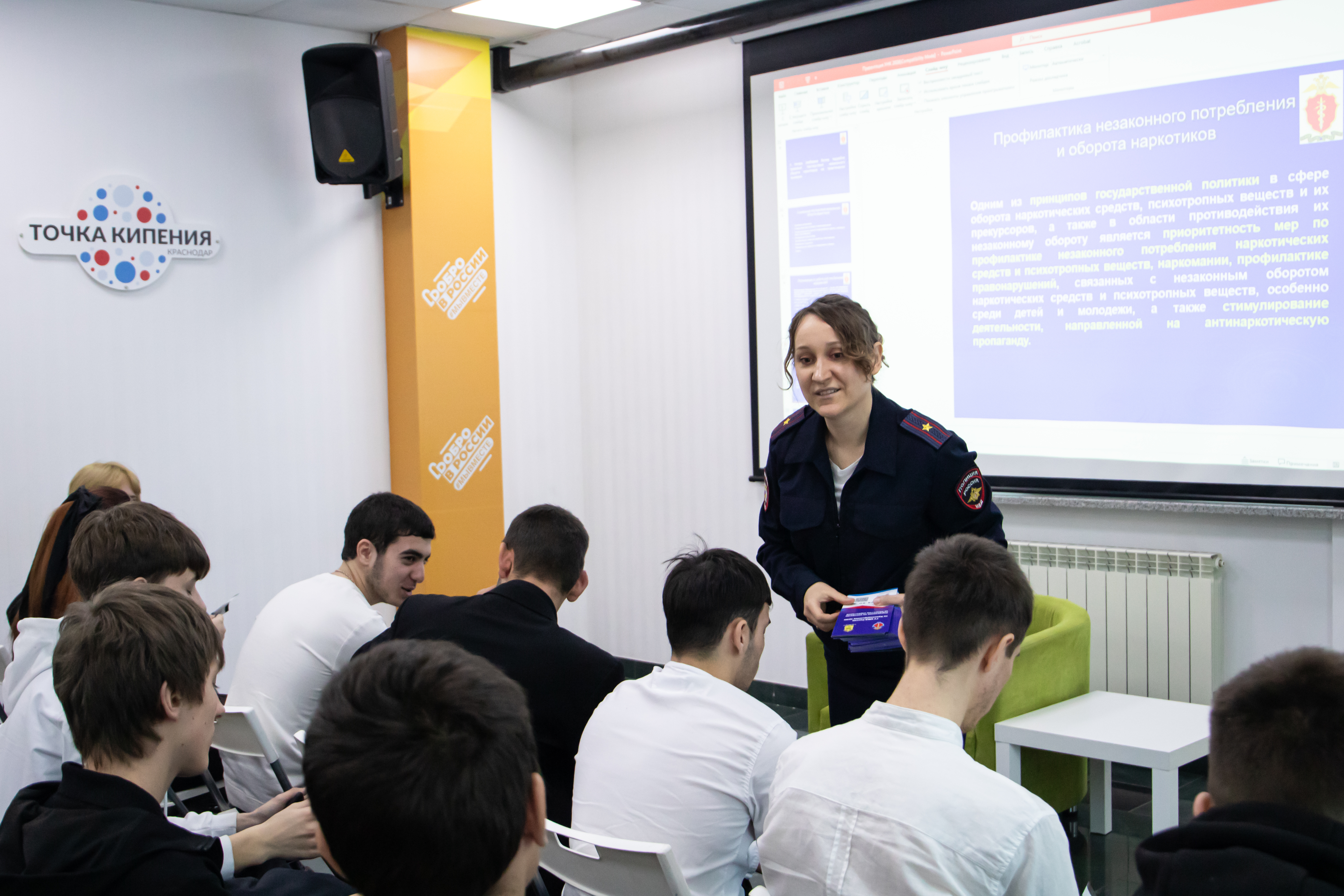 Екатерина Коробова, представитель управления по контролю за оборотом наркотиков ГУ МВД России по краю, провела беседу об ответственности несовершеннолетних. Главная цель — предостеречь подростков от роковых ошибок и рассказать о правовых последствиях употребления запрещенных веществ.