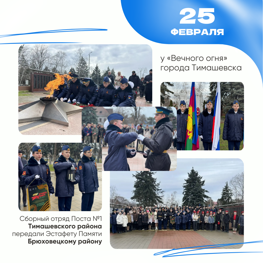 25 февраля - у «Вечного огня» от сборного отряда Поста №1 Тимашевского муниципального образования эстафета перешла Брюховецкому району.