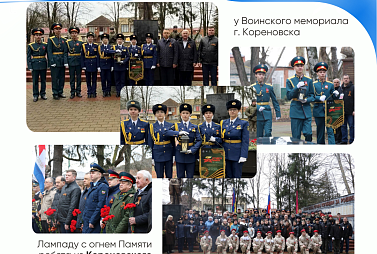 24 февраля - у Воинского мемориала ребята из Кореновского района передали лампаду с огнем Памяти курсантам Тимашевского района.