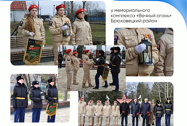 27 февраля - у мемориального комплекса «Вечный огонь» из рук активистов Почетного караула Брюховецкого района лампаду с огнем Памяти получили юнармейцы Приморско-Ахтарского округа.