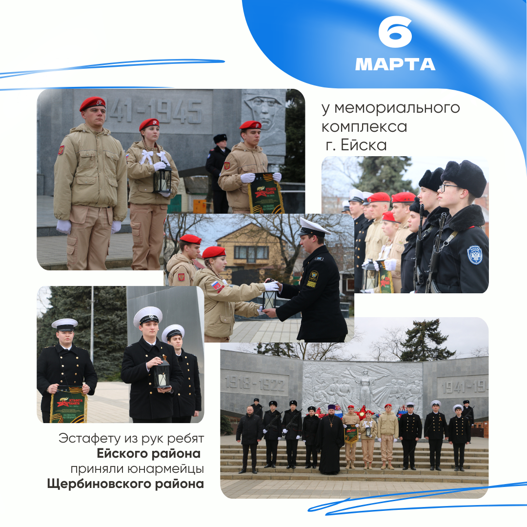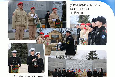 6 марта - у мемориального комплекса эстафету из рук Сводного отряда Поста №1 Ейского района приняли юнармейцы Щербиновского района.