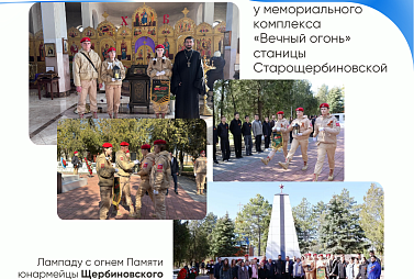 С начала года в Краснодарском крае стартовала краевая патриотическая акция «Эстафета Памяти», как дань уважения прошлому и подвигам предков. Каждый год, передавая огонь Памяти из рук в руки, мы чтим мужество и самоотверженность тех, кто ценой своей жизни даровал нам мирное небо.