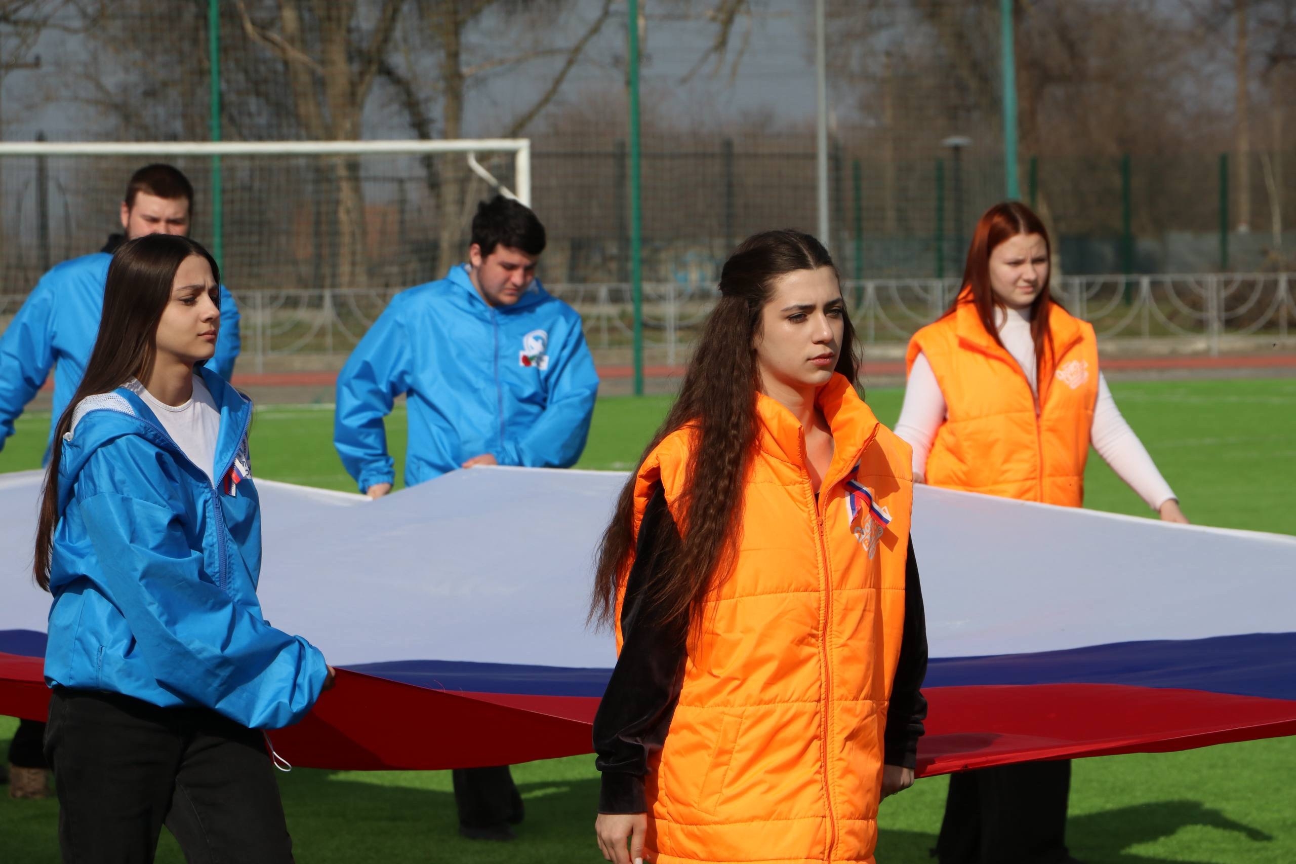 Тбилисском районе развернули 12-метровый триколор.