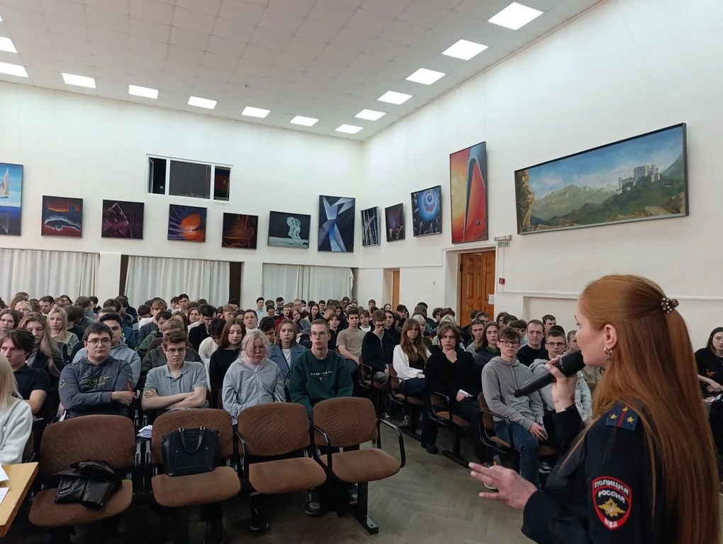 В рамках первой встречи со студентами колледжа пообщалась Марина Викторовна Ищенко, старший оперуполномоченный Управления по контролю за оборотом наркотиков ГУ МВД России по Краснодарскому краю, старший лейтенант полиции.