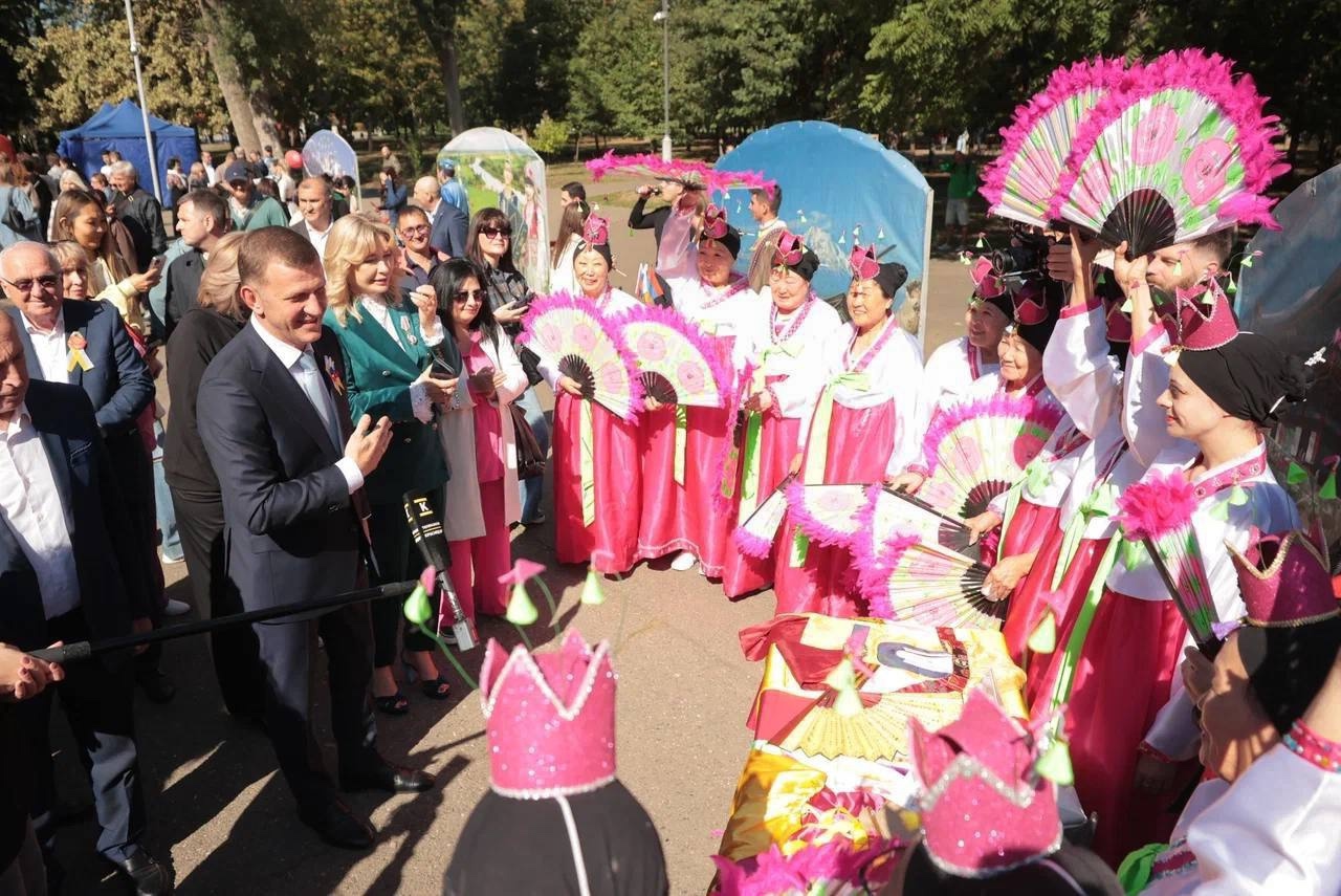 В Краснодаре, в День города, состоялся фестиваль «Хоровод Дружбы». Участниками стали более тысячи человек, которые танцевали, играли в народные игры, участвовали в викторинах и даже пообщались с делегацией из Херсонской области.