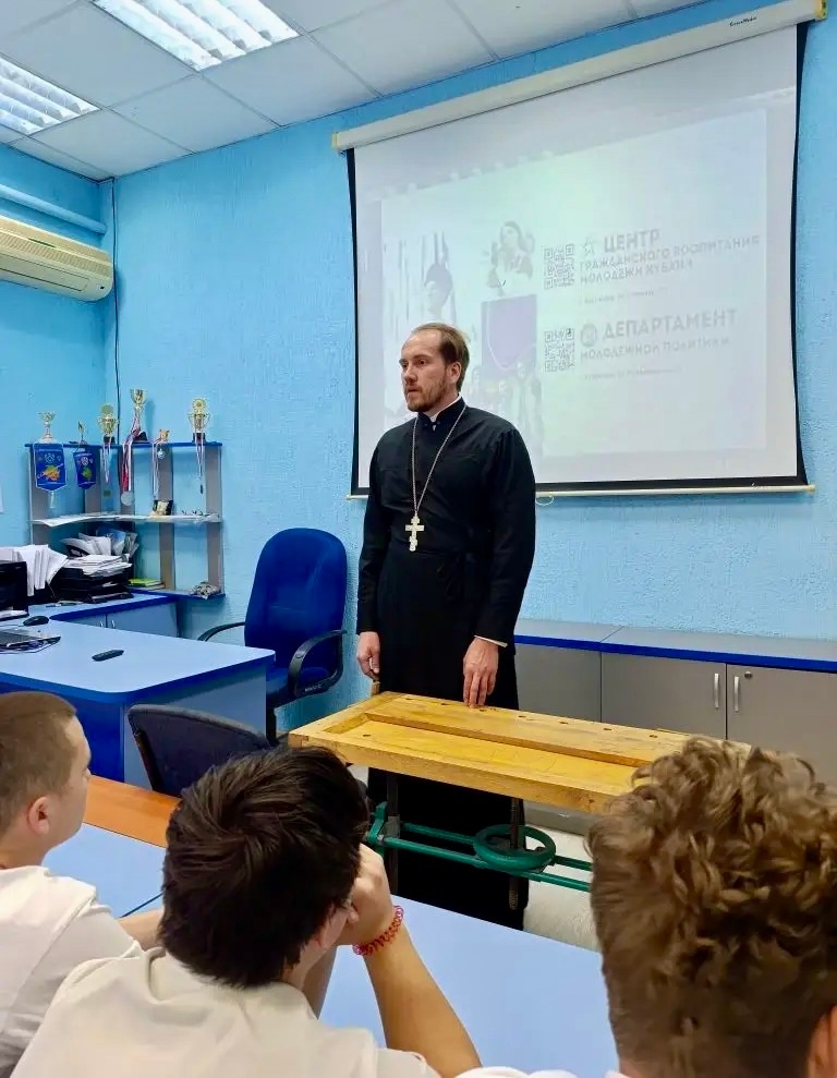 Штатный клирик храма Святителя Николая Чудотворца города Краснодара Сергий Кондратенко обсудил с ребятами тему семейных ценностей, отметив особую роль семьи как надежной опоры в жизни каждого человека.