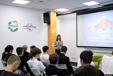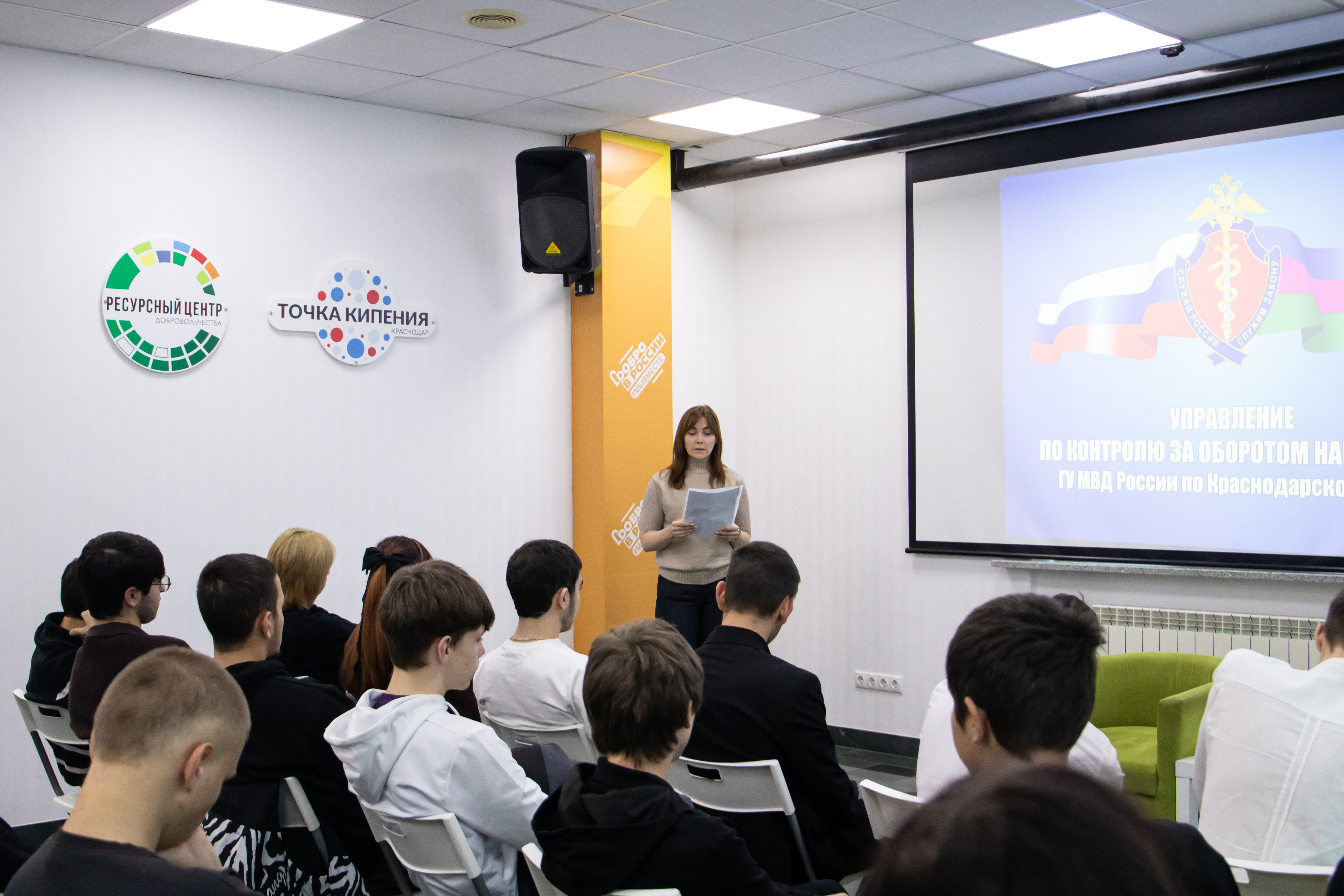 Екатерина Коробова, представитель управления по контролю за оборотом наркотиков ГУ МВД России по краю, провела беседу об ответственности несовершеннолетних. Главная цель — предостеречь подростков от роковых ошибок и рассказать о правовых последствиях употребления запрещенных веществ.