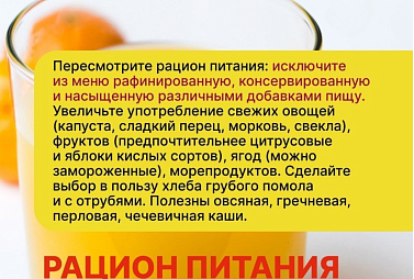 -полноценное здоровое питание, отказ от диет, употребление в пищу белковых продуктов, морепродуктов, продуктов, богатых витаминами С, А, Е.