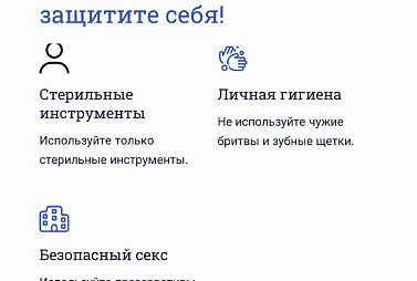 1. Избегать татуировок и пирсинга в несертифицированных местах; обращаться только к профессионалам, использующим стерильные инструменты.