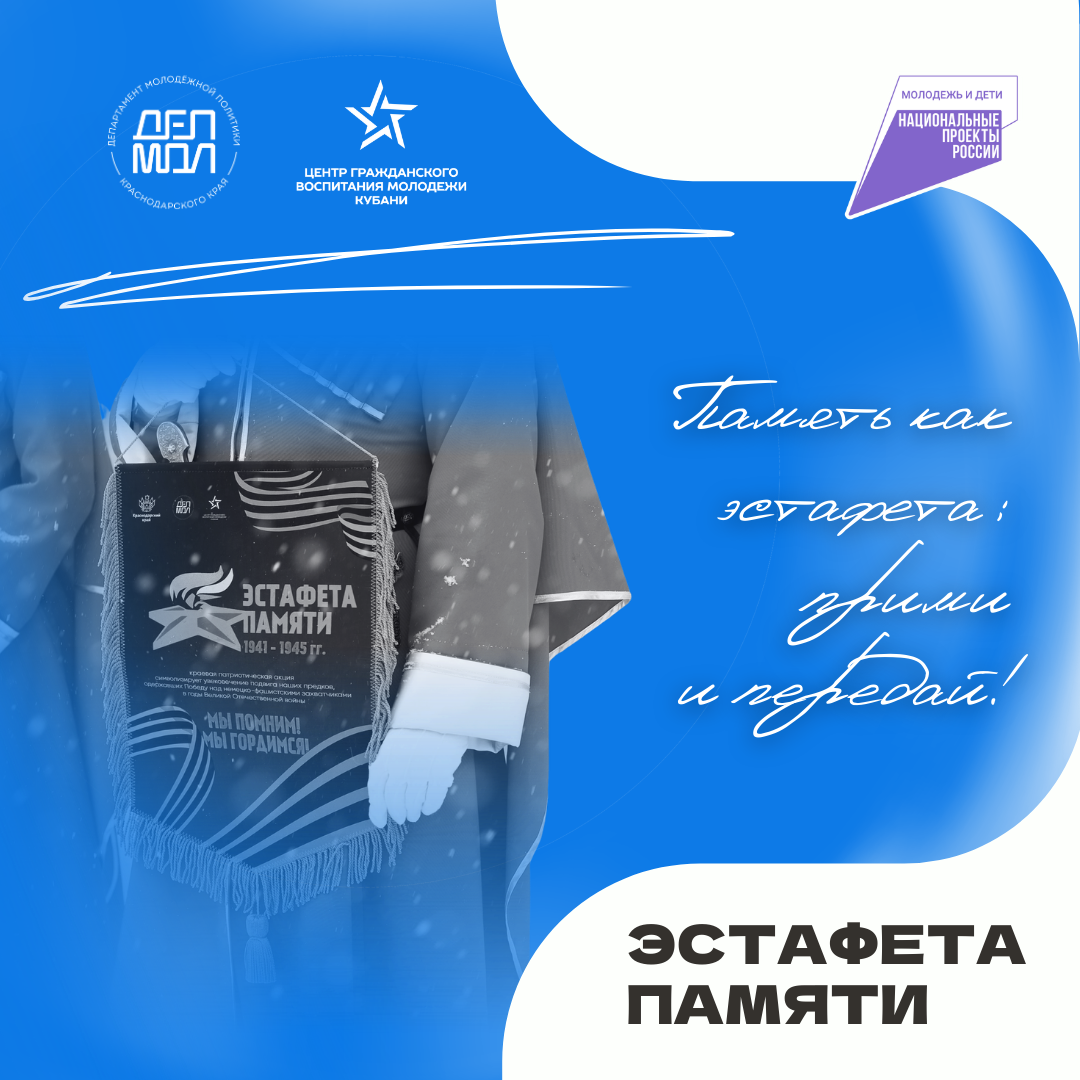 С начала года в Краснодарском крае стартовала краевая патриотическая акция «Эстафета Памяти», как дань уважения прошлому и подвигам предков. Каждый год, передавая огонь Памяти из рук в руки, мы чтим мужество и самоотверженность тех, кто ценой своей жизни даровал нам мирное небо.