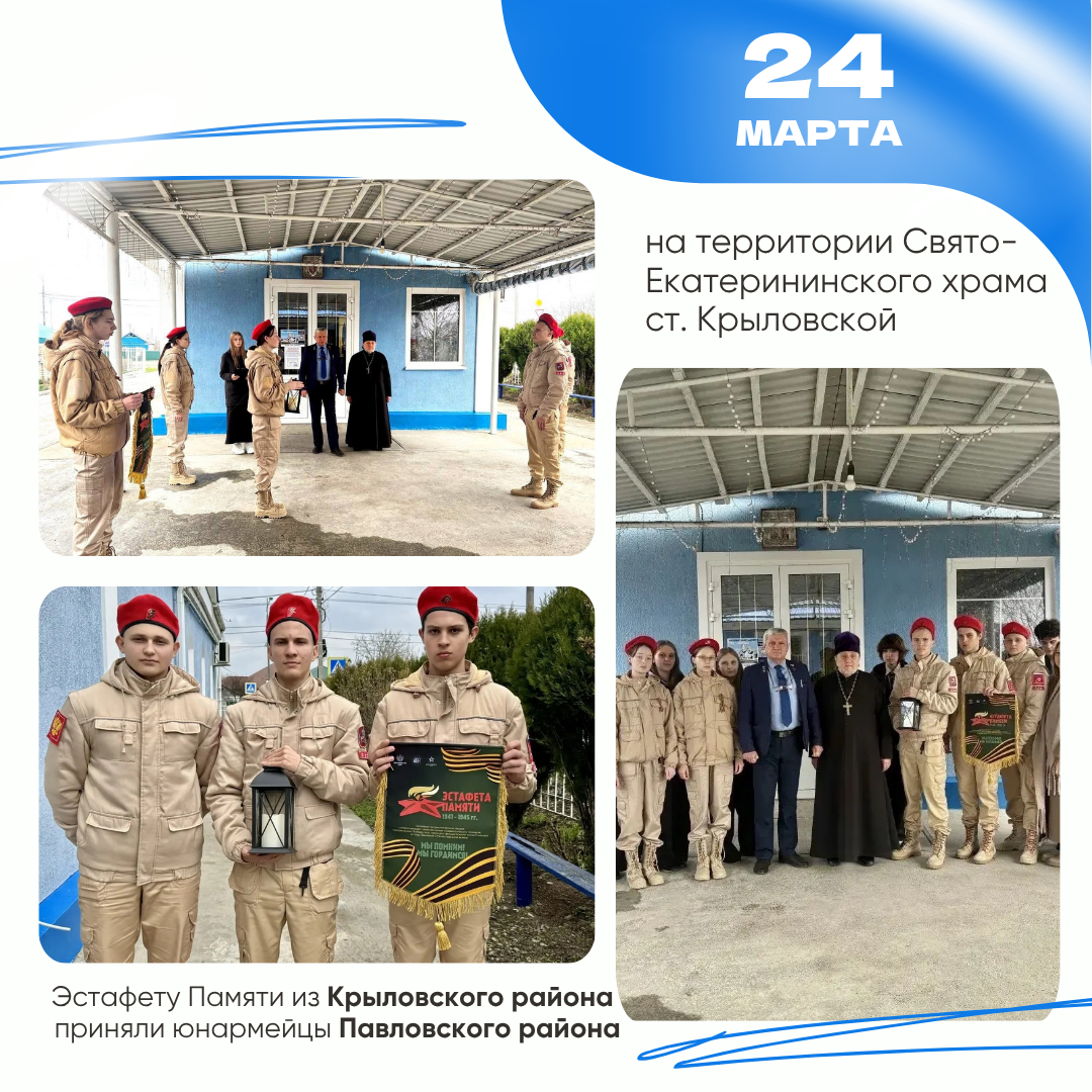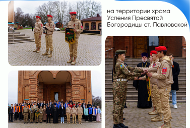 24 марта - на территории Свято-Екатерининского храма от юнармейцев Крыловского района эстафета перешла Павловскому району.