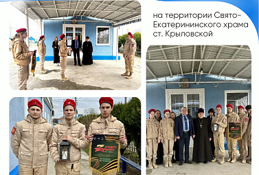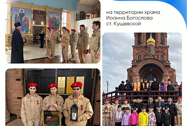 20 марта - на территории храма Иоанна Богослова ребята из Кущёвского района передали лампаду с огнем Памяти юнармейцам Крыловского района.