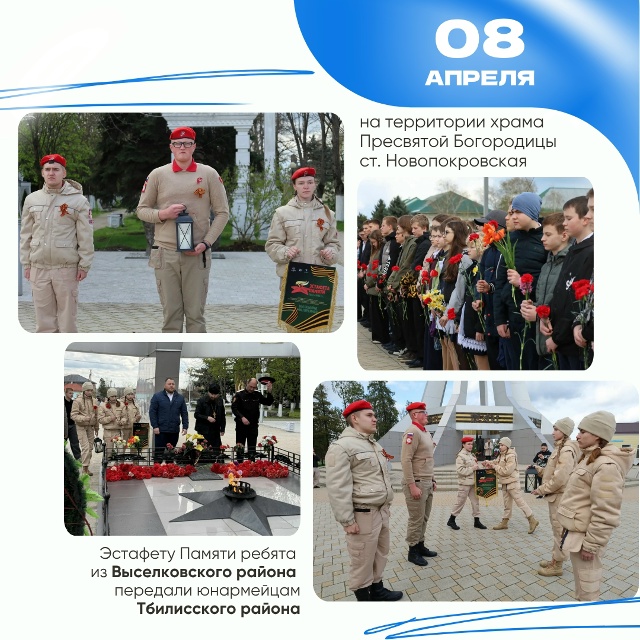 6 апреля - на территории храма Святой Блаженной Ксении Петербургской от юнармейцев Тихорецкого района Эстафета перешла Выселковскому району.