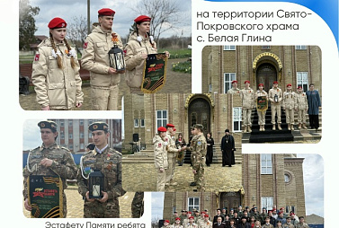 1 апреля - на территории Свято-Покровского храма Эстафету из рук представителей военно-патриотического клуба «Бастион» Белоглинского района приняли юнармейцы Новопокровского района.