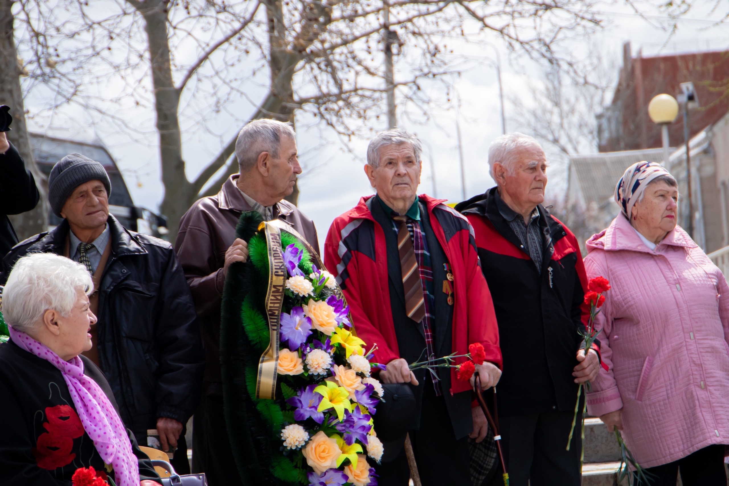 Среди участников — те, чье детство опалила война: бывшие малолетние узники концлагерей. Рядом с ними — ветераны и школьники.